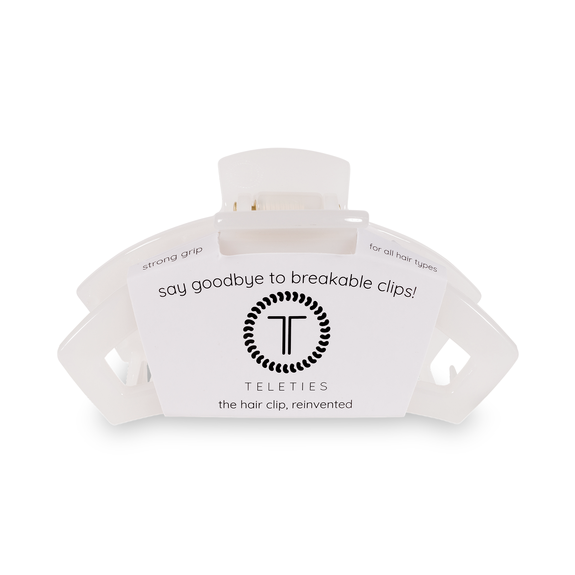 Our Open Hair Clip offers the same incredible advantages as our Classic Claw Clip, but with a unique open-style design that allows your hair to show through. Say goodbye to breakable clips! We have perfected the hair tie and now have re-invented the hair clip. Each clip has bendable teeth that take back to shape, they work on all hair types and have a strong hold. Hold your hair and enhance your style with the new TELETIES Clip! Small clips are great for thin hair.